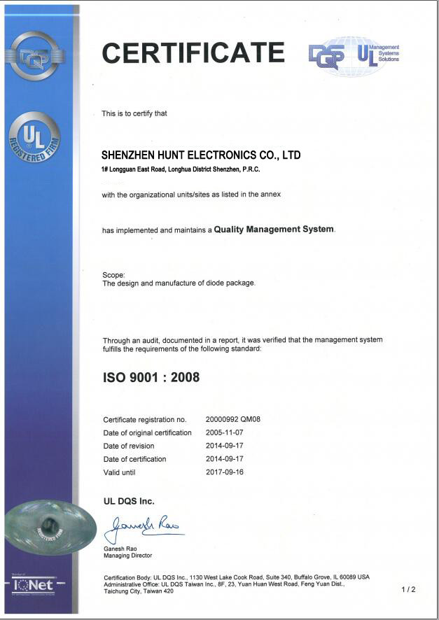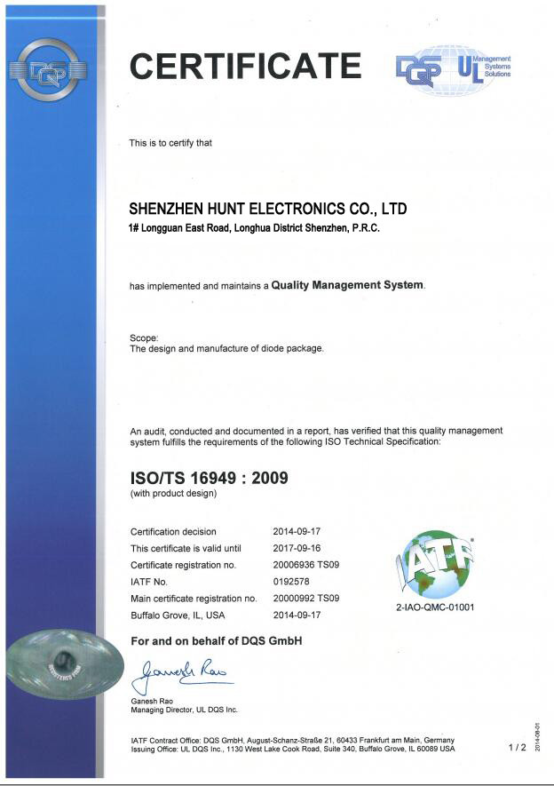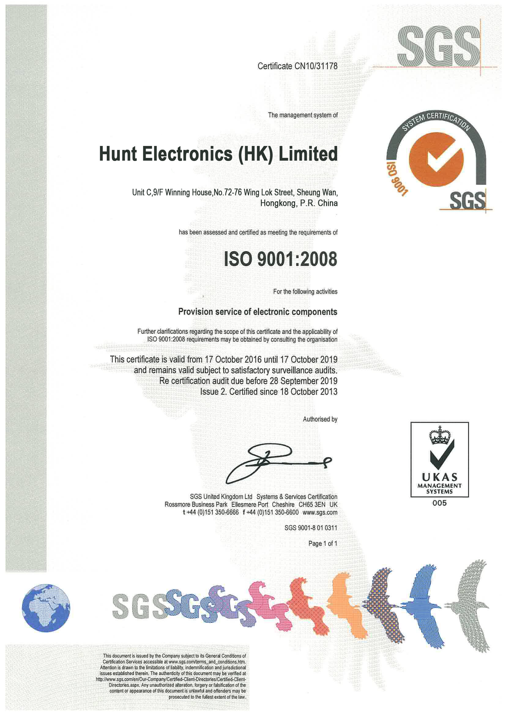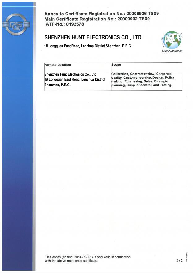 Through our unique quality improvement initiative, AIMQ (HUNT Integrated Manufacturing Quality), the quality and reliability are designed in our products and manufacturing is strictly controlled to ensure that the performance of our products conforms to the desired quality and reliability as determined at design stage.